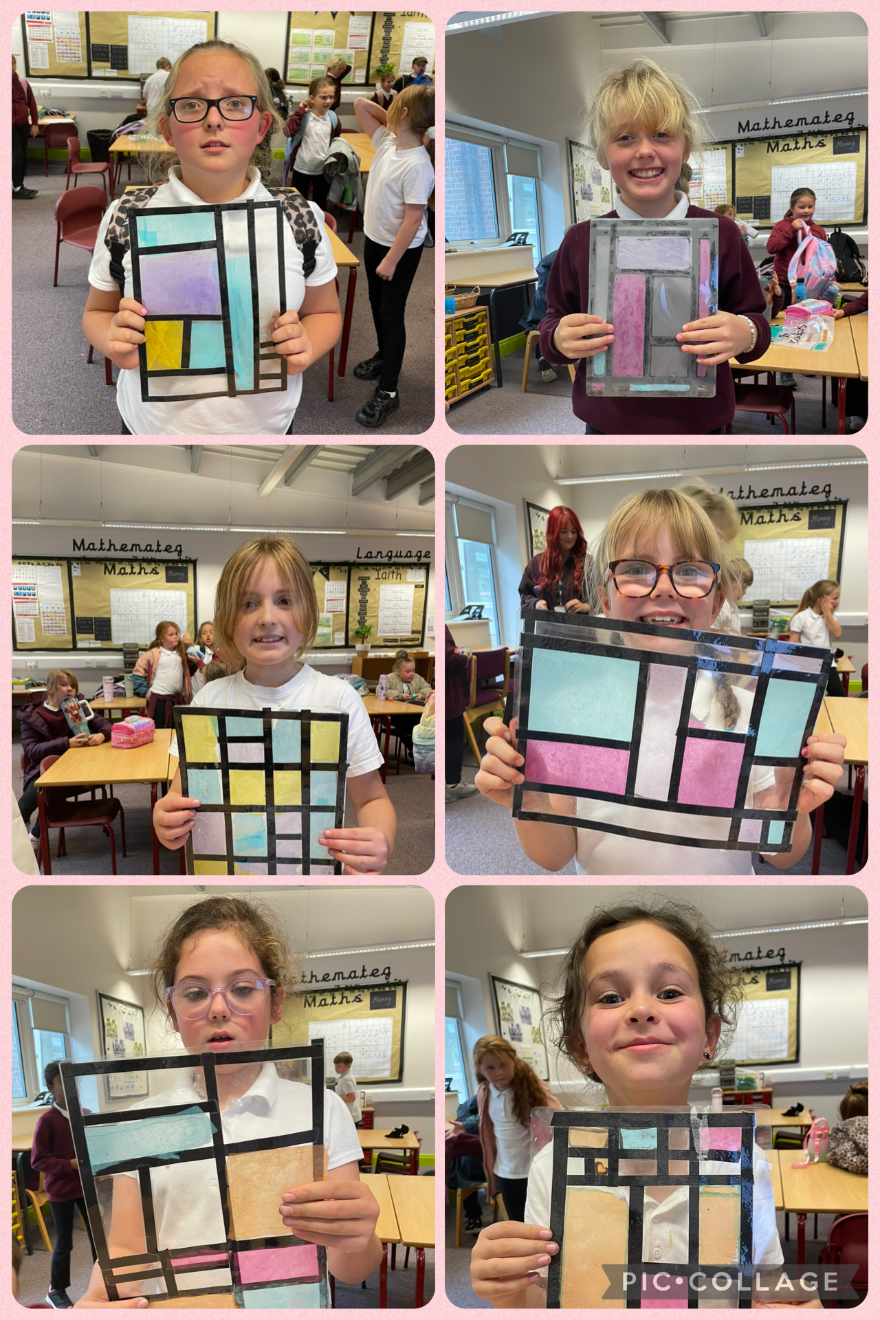 This afternoon Dosbarth have been recreating their own Piet Mondrian art pieces. They are displayed on our windows and look …