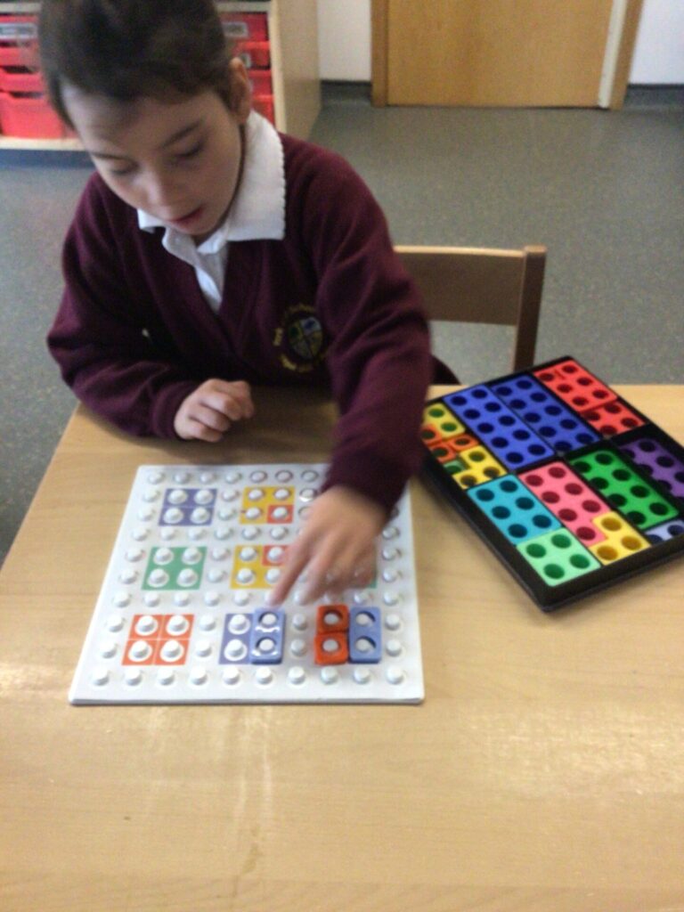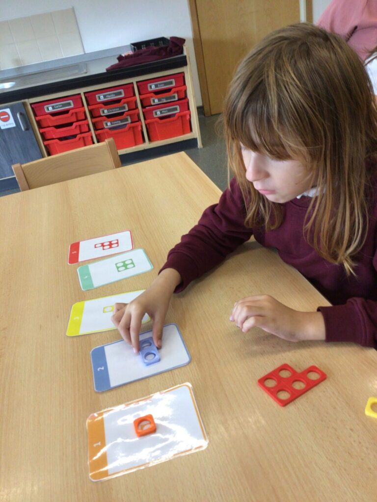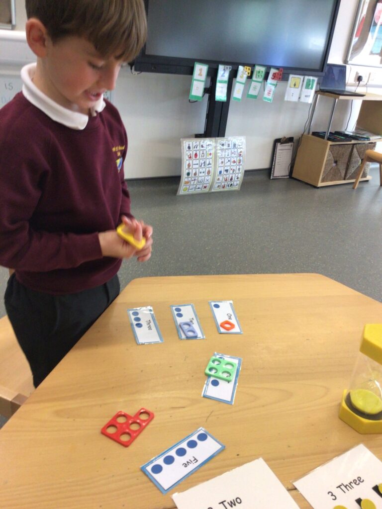 We have started to introduce Numicon shapes into our Maths sessions to support our understanding. We began by covering the base board and copying the images, we then began to match the shapes to their corresponding picture. Finally, we sequenced the shapes using a Numicon number line as support.