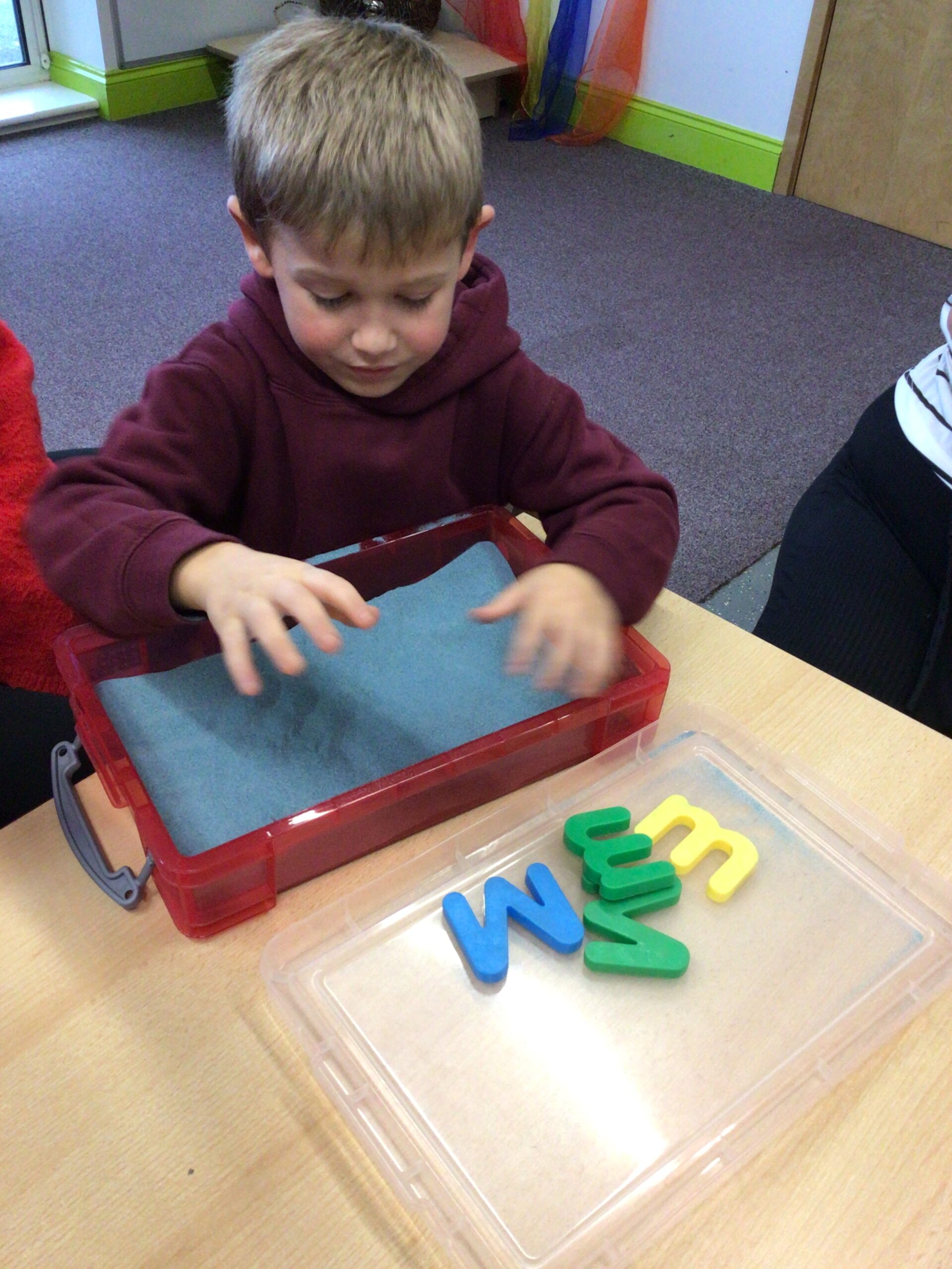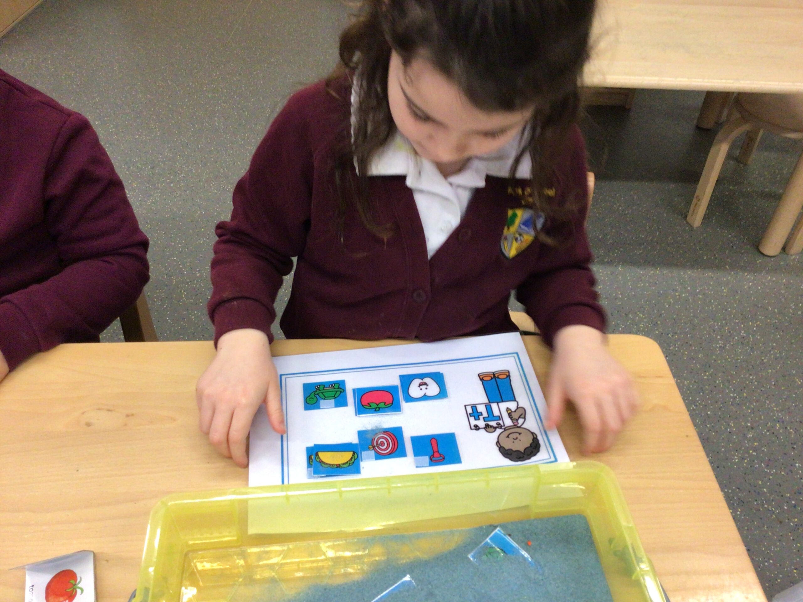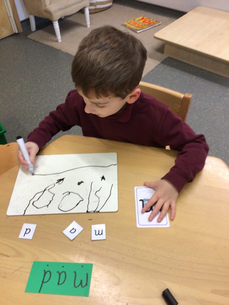 Here’s a glimpse into what we get up to during our phonics lessons. We love exploring letters and pictures hidden in the sand, discovering objects in feely bags, and developing our fine motor skills through colouring and cutting. We also use picture cards and letter tiles to blend sounds together and build words.