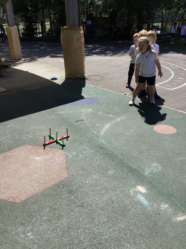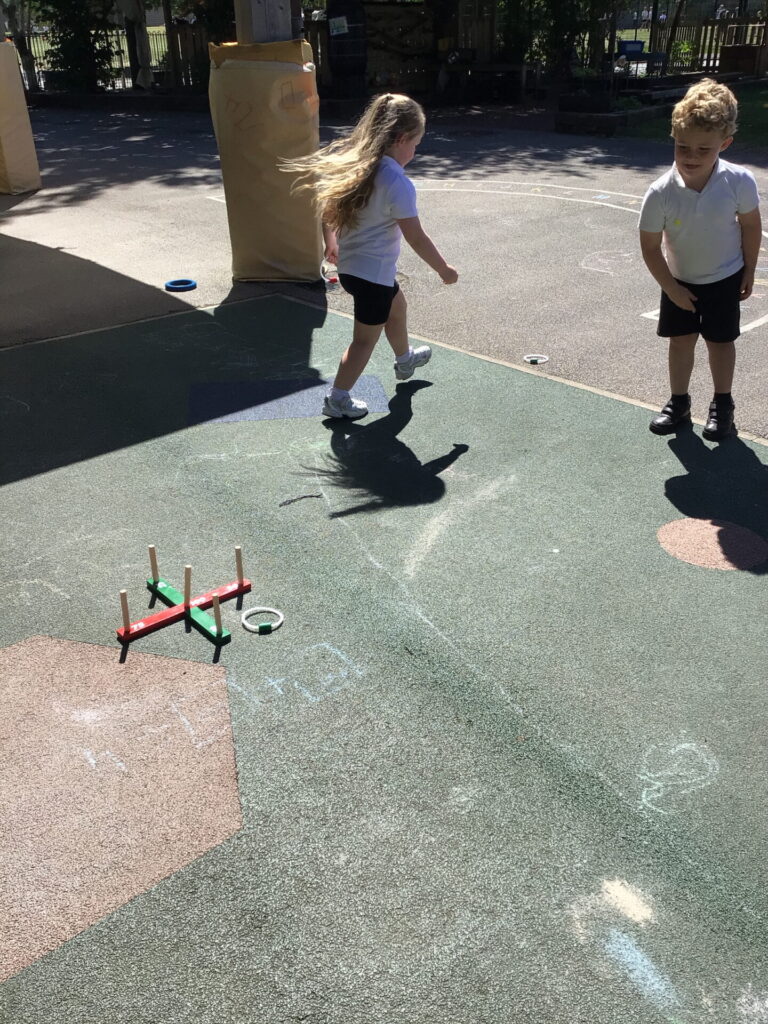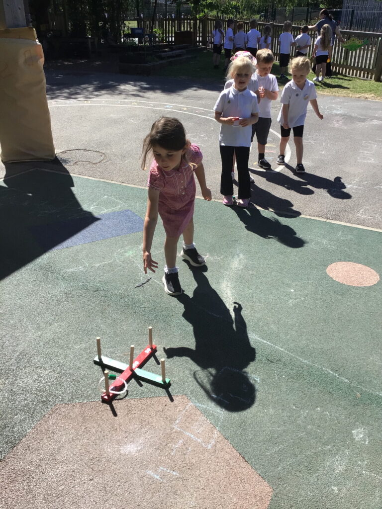 The children have been learning about old and new toys this week. They had fun this afternoon playing some traditional games outside!