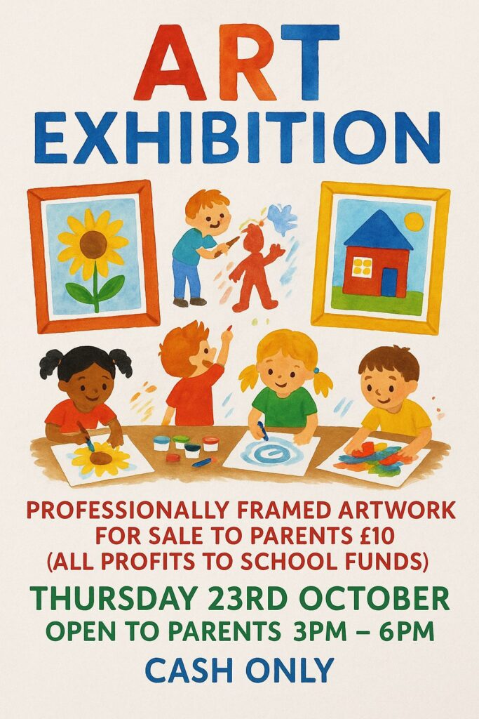 The Art Exhibition will be held on Thursday 23rd October from 3pm to 6pm in the school hall.