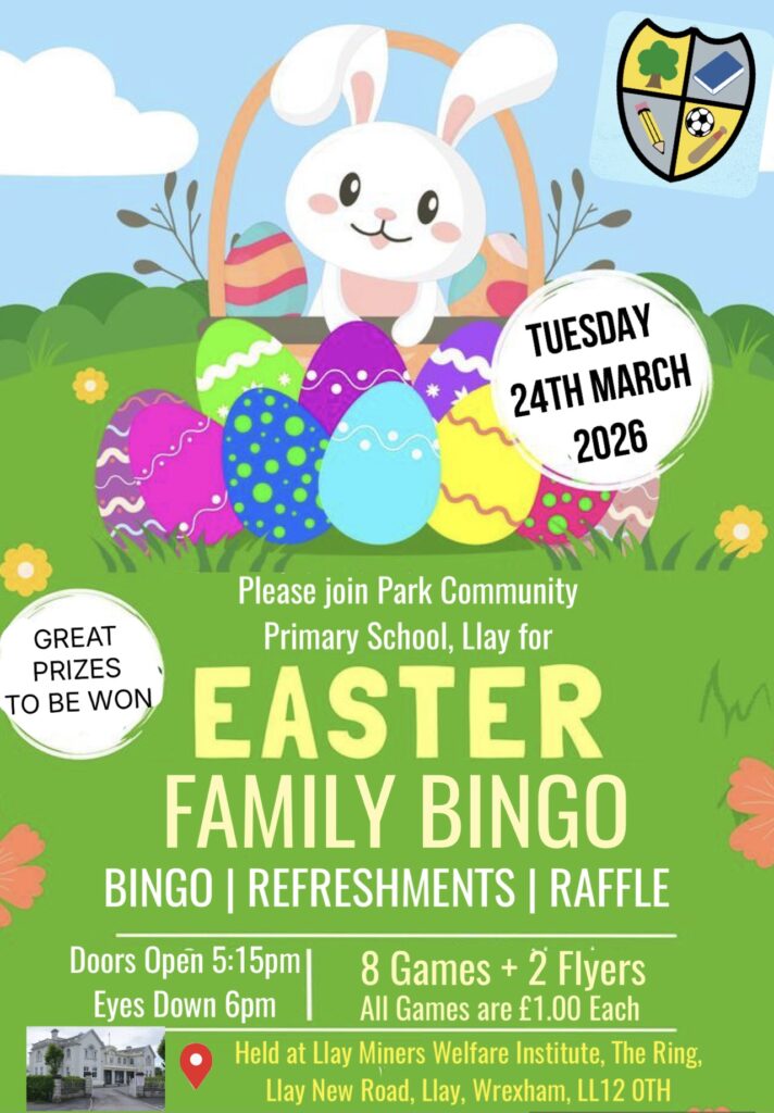Please see the attached poster with details of our Easter Bingo Event at the Llay Welfare Club on Tuesday 24th March 2026.