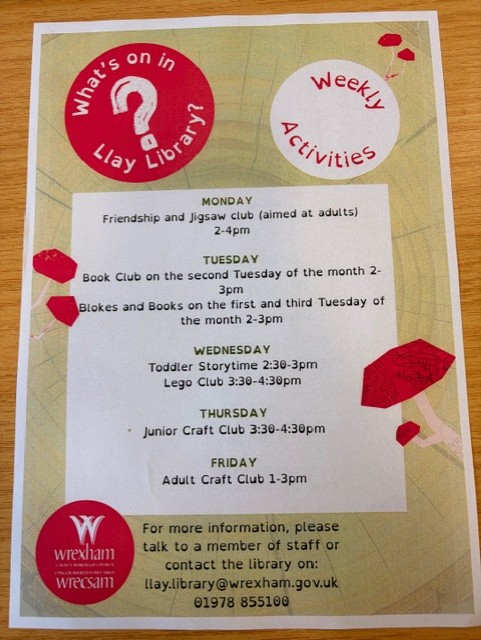 We have been asked to share the below information on behalf of Llay Library (based in the Resource Centre).