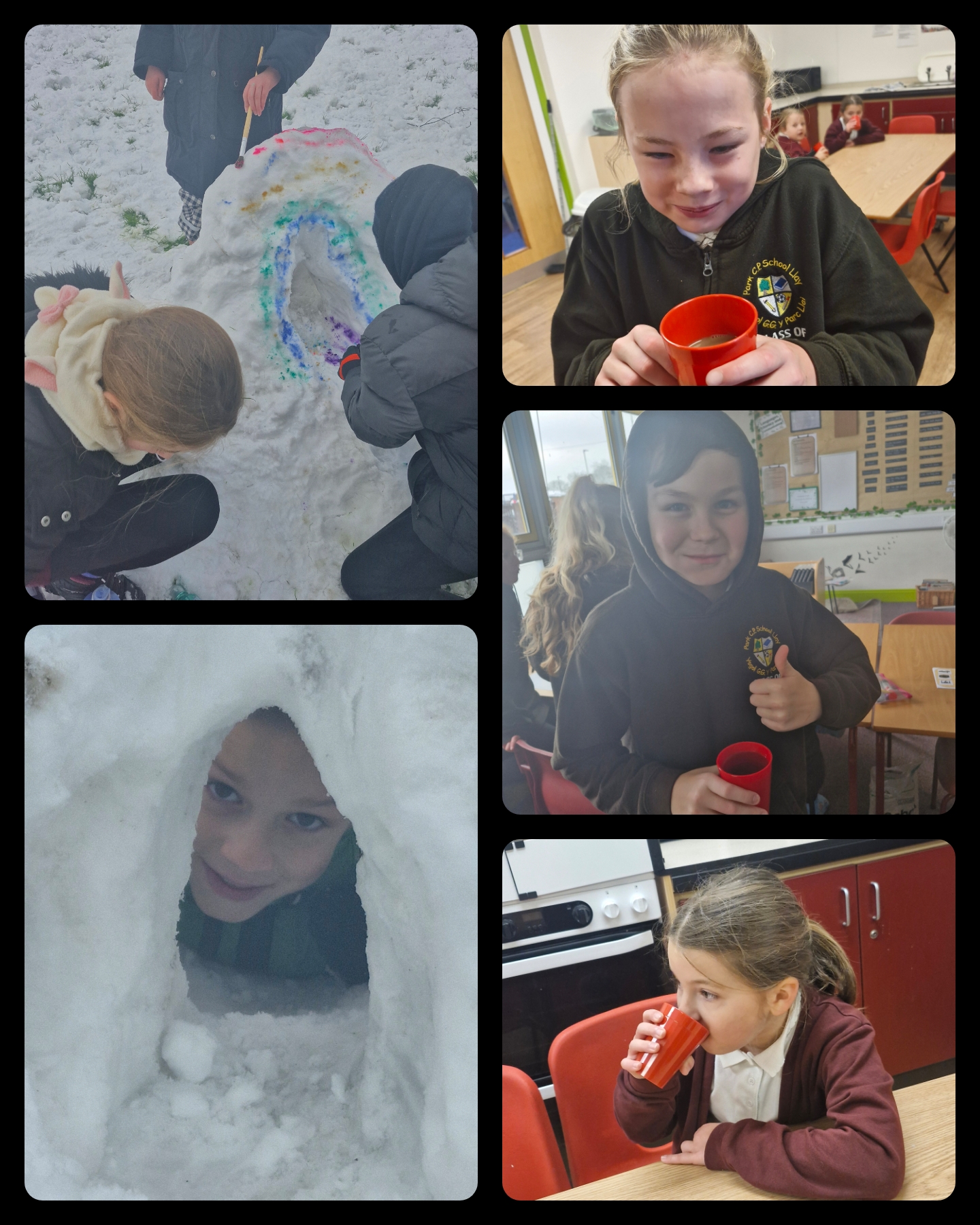 The children of Dosbarth Idwal had lots of fun playing in the snow. They used their team work to create …