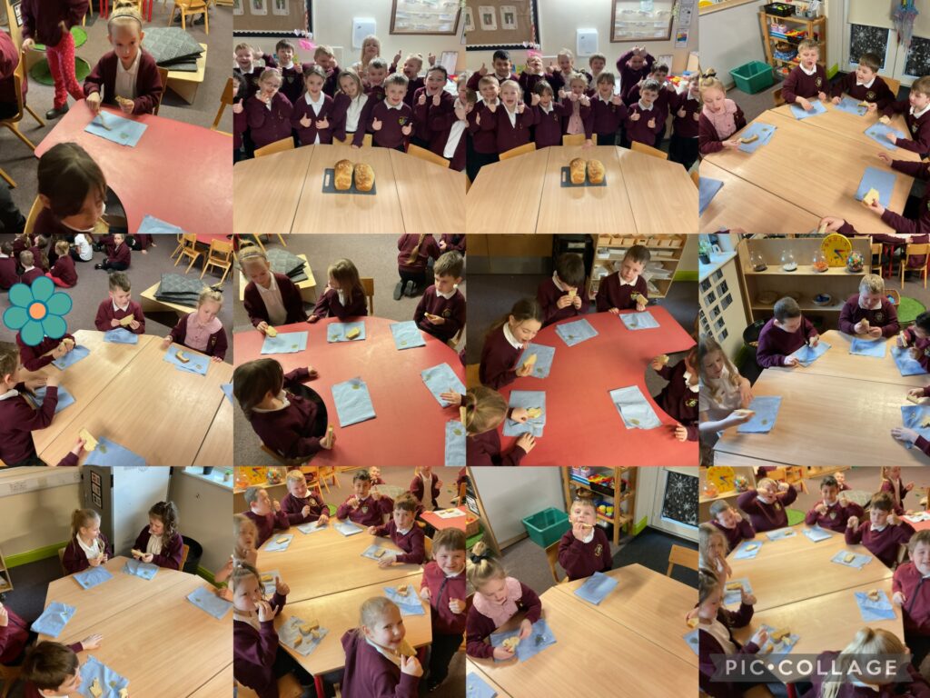 We have also been looking at Castles and who lived in them. We looked at the food they used to eat at medieval banquets and made our own menu. We then made our own bread, it was delicious with honey……we even had seconds!